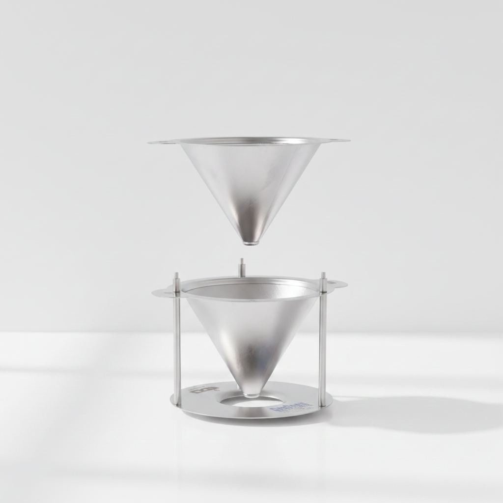 Zaparzacz wyposażony jest w dwa metalowe filtry o różnej gęstości, które umożliwiają jednoczesne wykorzystanie dwóch stopni ekstrakcji. Górny stożek odpowiada za pierwsze zaparzanie, a powstały napar przepływa przez dolną warstwę kawy, tworząc drugą ekstrakcję i wzbogacając profil smakowy napoju.