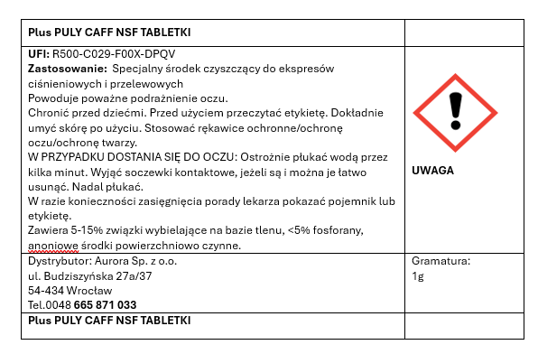 PULYCAFF TABLETKI CZYSZCZĄCE 1G DO AUTOMATYCZNYCH EKSPRESÓW DO KAWY