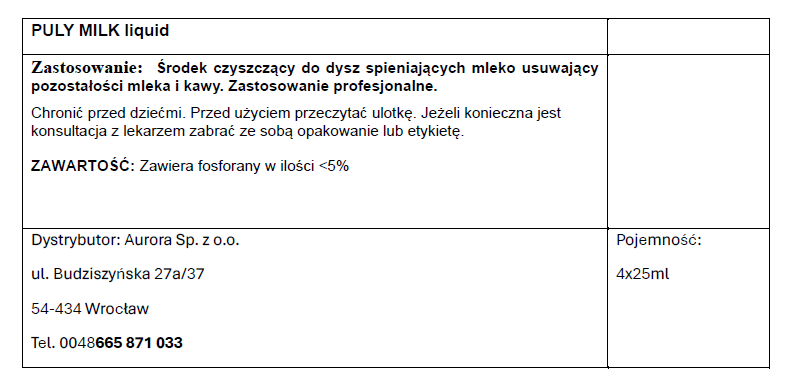 PULY MILK PŁYN DO CZYSZCZENIA SPIENIACZA DO MLEKA W EKSPRESACH